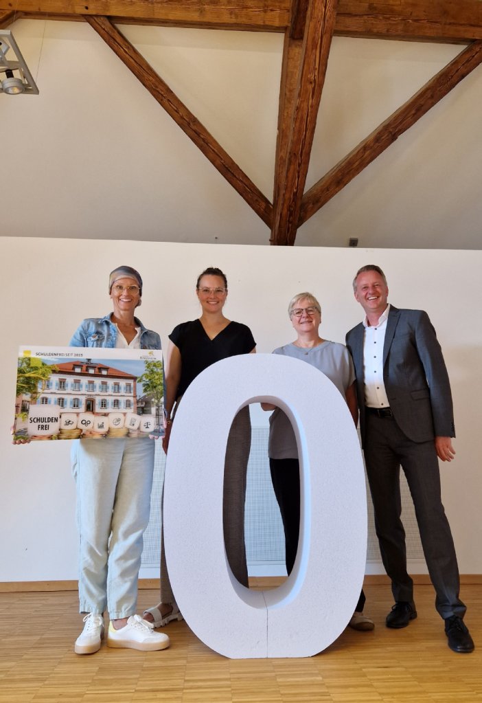Die Gemeinde Ringsheim hat jetzt Ihr letztes Darlehen zurückbezahlt. Der Haushalt der Gemeinde ist nun vollständig schuldenfrei, die „schwarze Null“, die auf dem Foto der Kämmerei-Mitarbeiterinnen und dem Bürgermeister eine „graue Null“ ist, konnte erreicht werden. Gleichzeitig sieht Bürgermeister Pascal Weber aber finanziell deutlich schwierigere Zeiten auf die Gemeinde zukommen, wie dies bei fast allen Kommunen der Fall ist.
