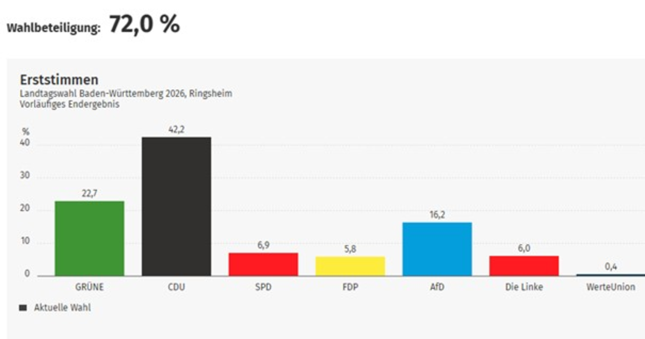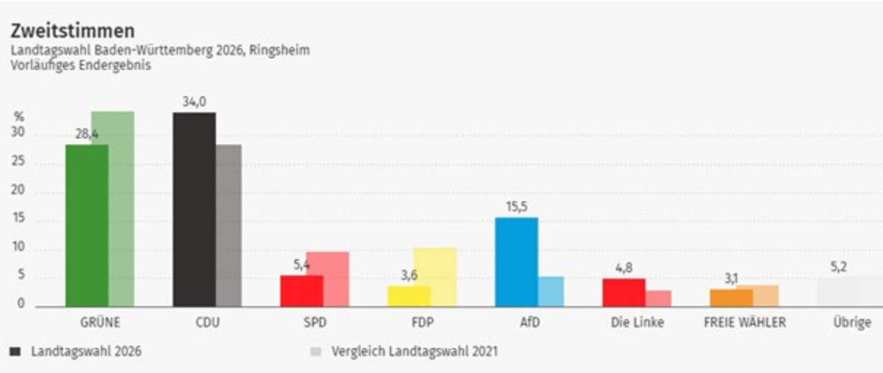 Übersicht über die Ergebnisse der Landtagswahl 2026 in Ringsheim: