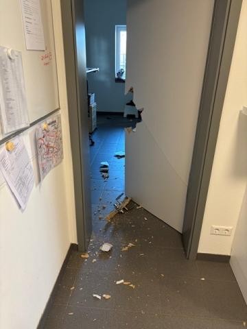 Die Eindringlinge (oder die Einzelperson) überstiegen den Zaun, hebelten gewaltsam die Eingangstür für Mitarbeiter auf und zerstörten mutwillig die Tür zum Büro des Bauhofleiters.