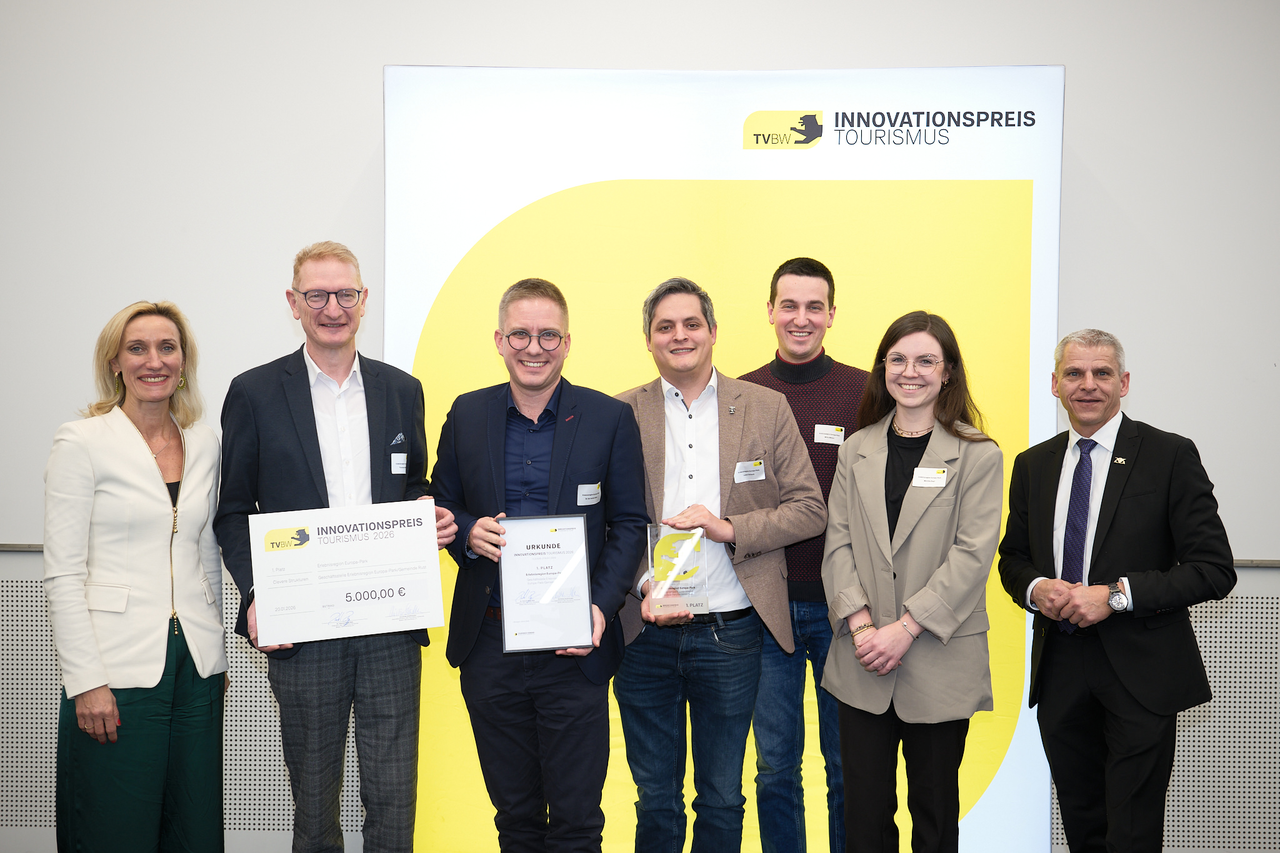 Mit dem seit 2024 verliehenen Innovationspreis Tourismus fördert der Tourismus-Verband Baden-Württemberg kreative Ideen, ungewöhnliche Lösungen und innovative Projekte. Die Auszeichnung wird auf der Urlaubsmesse CMT jährlich mit einem anderen inhaltlichen Schwerpunkt vergeben. Dieses Jahr darf sich die Erlebnisregion über den Preis freuen.