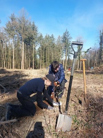 Mit Spaß und Fleiß wurde gemeinsam für die Natur und den klimagerechten Umbau des Ringsheimer Waldes gearbeitet. Hochmotivierte Pflanztruppen strömten aus und pflanzten bei herrlichem Frühlingswetter über siebenhundert Eichen, Schwarznuss, Kirsche u.a.. Eine weitere Gruppe schwärmte aus, um Unrat und ausgediente Wuchshüllen einzusammeln.