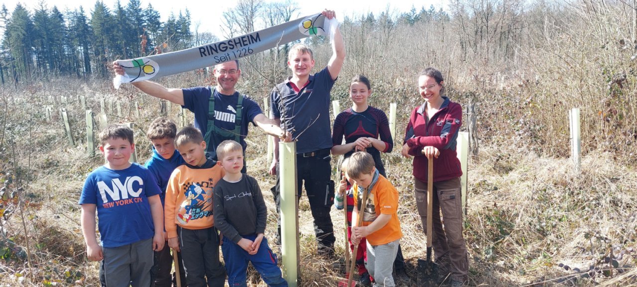 Die vierte Ringsheimer Baumpflanzaktion war ein voller Erfolg. Die hohe Zahl der Helferinnen und Helfer, Groß und Klein, zeigt, wie wichtig den Ringheimern das Thema Klimaschutz ist.