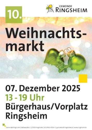 Am Sonntag, den 7. Dezember 2025, verwandelt sich das Bürgerhaus Ringsheim und sein Außenbereich von 13 bis 19 Uhr in ein stimmungsvolles, familiäres Weihnachtsdorf.