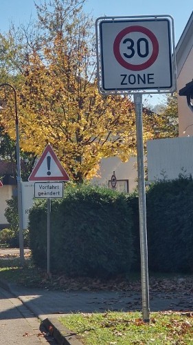 Die Einrichtung dieser „Zone 30“ hat die Gemeindepolitik schon länger beschäftigt. Die Wunschvariante des Gemeinderates, „Tempo 30“ mit Beibehaltung der Vorfahrtsstraße wurde regelmäßig von der Straßenverkehrsbehörde abgelehnt, dies sei/ist rechtlich nicht zulässig. So musste jetzt doch „Rechts vor Links“ eingeführt werden.